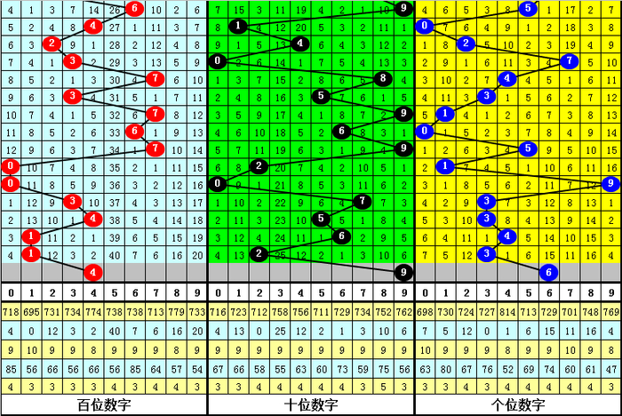 号码012路分析:在历年第230期开奖中,号码012路总比例为22:22:16,其中0路号码断档6期,1路号码断档6期,2路号码断档7期,本期012路比参考2:1:0。