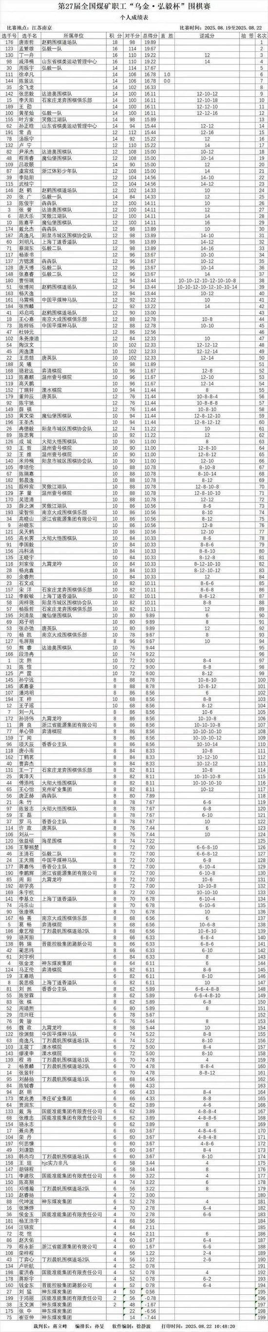 8月22日,第27届全国煤矿职工“乌金·弘毅杯”围棋赛在南京市白金汉爵大酒店战罢;最终孟繁雄、周振宇率领的弘毅一队获得煤企组团体冠军;赵鹤围棋道场队获得公开组团体冠军;个人组方面,唐崇哲以九战全胜成绩夺得冠军,孟繁雄、丁一舟分别获得个人第二、第三名。
