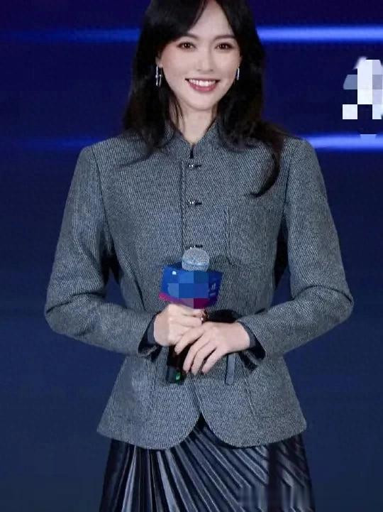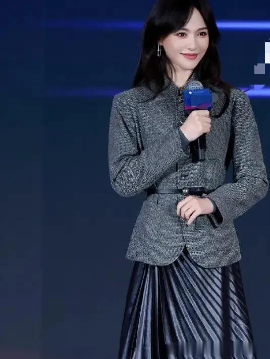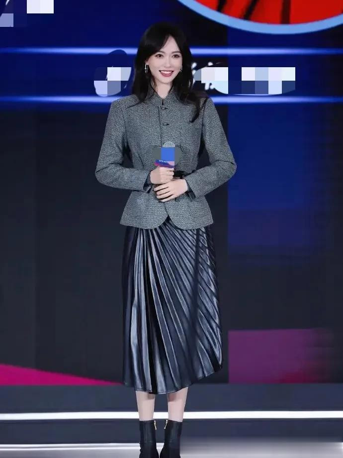 唐嫣的气质真是出挑! 灰色收腰外套+百褶半身裙+短靴, 高级又大气