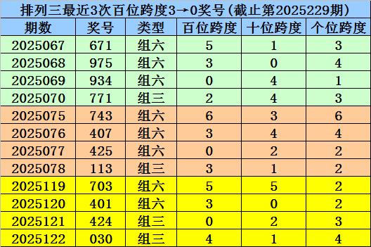 第2025119-第2025121期奖号:703、401、424,其下期奖号为:030,首位号码跨度为4;
