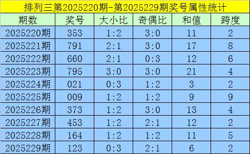 上期回顾:排列三第2025229期出现奖号123。开出组六,奇偶比2:1,012路比1:1:1,大小比0:3,和值6,跨度2。