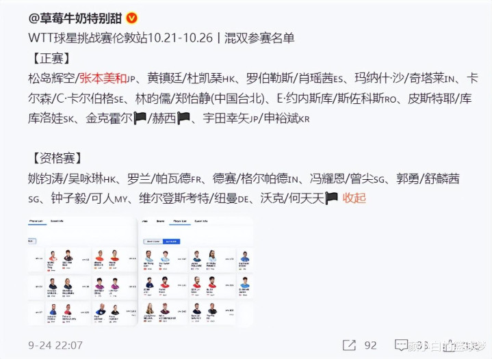 而此前WTT的五站赛事张本美和最远的是WTT中国大满贯的八强,最差的是WTT瑞典大满贯的32强,她个人的竞技状态十分的不稳定性。