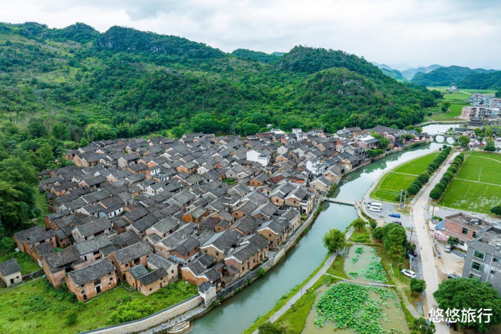 古村背靠山面临河,站在村外一眼望去都是绿意盎然,潺潺的小桥流水,古朴的老房屋建筑倒映在河面上。