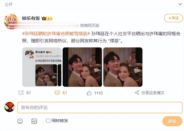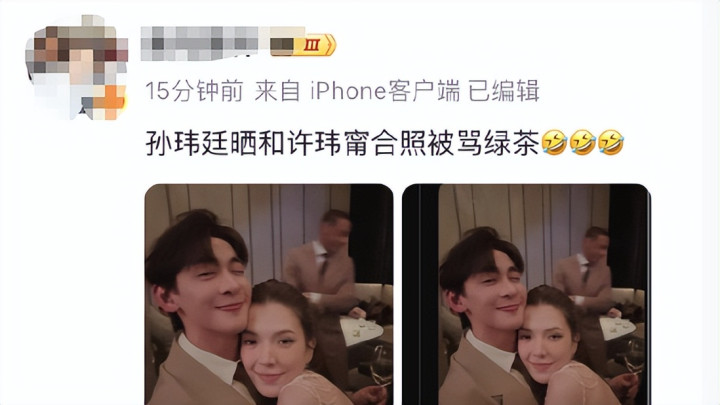 12月1日,演员孙玮廷在社交平台上晒出了一张与许玮甯的亲密合照。