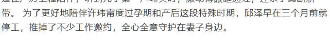 她表示邱泽为了照顾产后的自己,特意停工小半年。